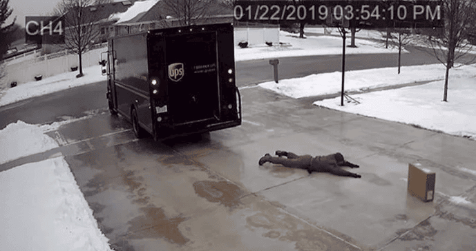 Kurirja, ki se je po svojih najboljših močeh trudil, da bi paket dostavil na zamrznjenem vozišču, je posnela nadzorna kamera, video pa je v hipu postal viralen.