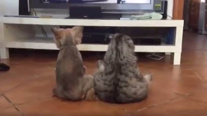 gledanje mačka pes smeh soba tv viralno zabava