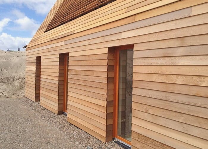 Za gradnjo hiše sta bili uporabljeni dve vrsti lesa: za konstrukcijo je bil uporabljen sibirski macesen, za obloge pa cedra.
