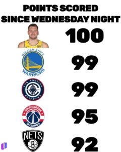 Po družbenih omrežjih kroži grafika, ki poudarja, da je v tem obdobju sam dosegel več točk kot celotne ekipe – Golden State Warriors, Los Angeles Clippers, Washington Wizards in Brooklyn Nets.