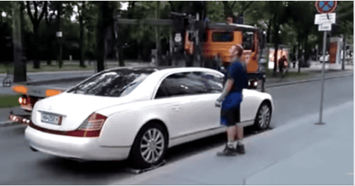 Si lahko predstavljate, kako so se počutili fantje, ki so poskušali z “pajkom” odpeljati ta super avtomobil, ki tehta skoraj tri tone?